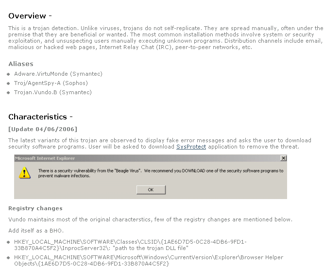 Contoh maklumat tentag trojan Vundo: